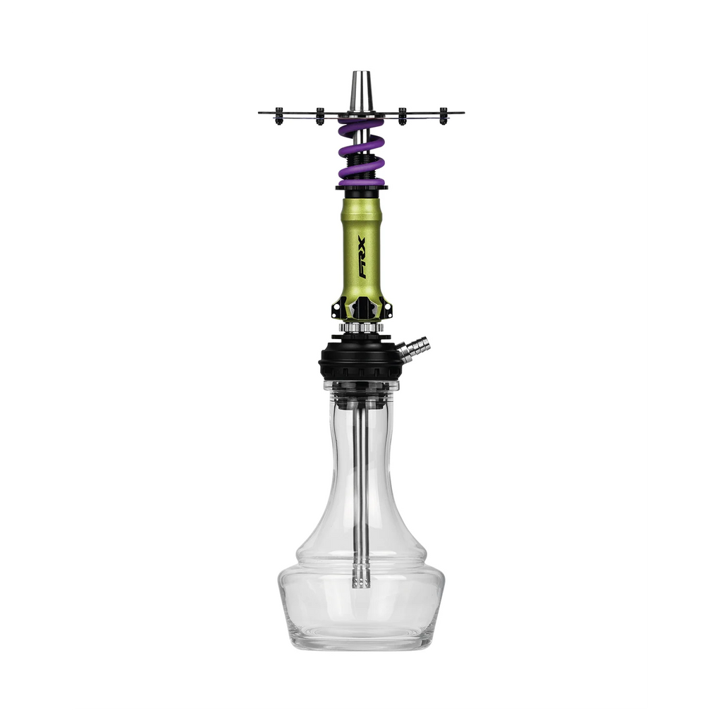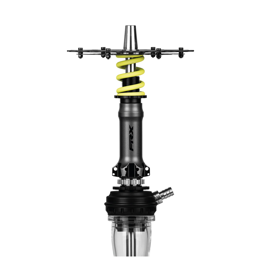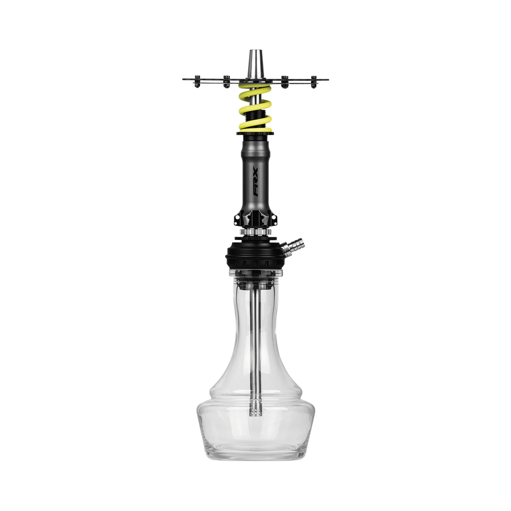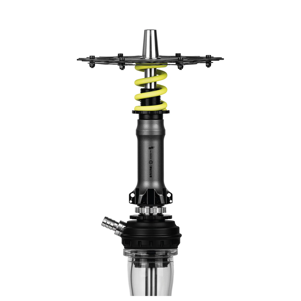 Amotion Pedal RX Hookah is a performance-driven design inspired by the aesthetics and mechanics of mountain biking. Featuring detailed elements such as a chainring-style tray and a shock absorber-inspired sleeve, it delivers a distinctive, industrial look with strong visual identity. The draw is intentionally more restrictive compared to other Amotion models, offering a controlled, dense smoking experience similar to a “downhill-style” pull. The innovative blow-off system releases smoke through the spring element, dispersing it around the tray for a dynamic visual effect. Built with aluminum, stainless steel, glass, and silicone, the Pedal RX ensures durability and everyday usability, while the magnetic hose connection and adjustable diffuser provide convenience and customization.